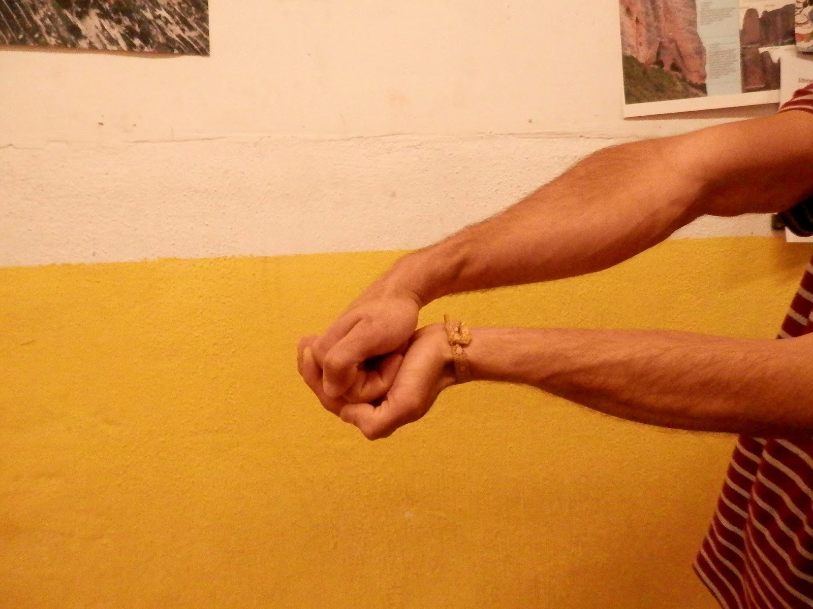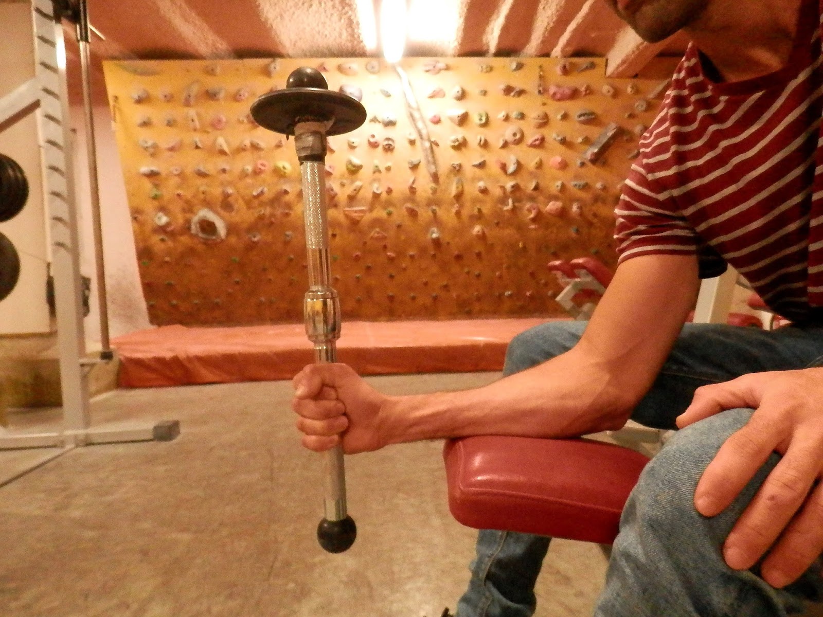 Para realizar este ejercicio deberás estar sentado con el brazo doblado en un ángulo de 90° y apoyado en una superficie. Agarra el extremo sin peso de la barra y gírala hacia arriba y hacia abajo desde la posición del pulgar hacia abajo hasta la del pulgar hacia arriba. Continua girando la muñeca hacia arriba y hacia abajo hasta hacer de 15 a 20 repeticiones. Realiza 2 series 2 veces en cada entrenamiento; de hecho, puede ser mejor realizar 2 series al principio y al final de cada actividad de escalada. Varia la resistencia, bien añadiendo peso, bien colocando la mano mas lejos del extremo con peso.